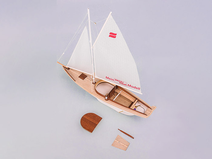 All you need to construct the model is modelling pins and adhesive tape. The kit includes all the wooden parts and fittings required to build the boat, plus rudder, glue and comprehensive building instructions in German, English, French, Italian and Spanish.