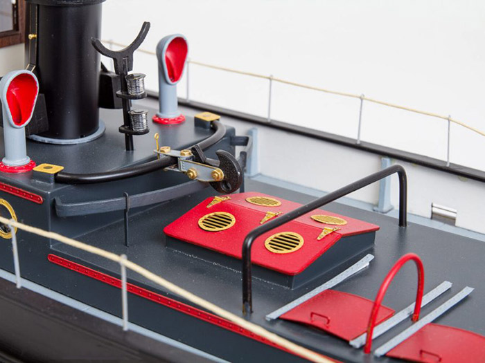 Tim is a steam tug from the early 20th century. The model can be built as a working ship or as a static museum model (with railing). The model impresses with an extensive set of fittings and high-quality etched brass parts allowing the model to be finely detailed. The model kit contains all wooden parts required for construction, ship's shaft, rudder, building slipway, fittings set, etched parts and detailed 3D construction instructions.