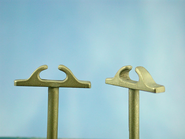 Curved fairleads made from cast brass. Supplied on a stem that could also be used as a fixing pin.