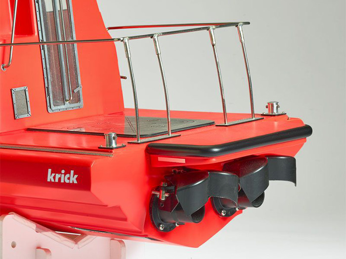 The hull, deck and superstructure are made of white fibreglass plastic providing robustness and fine detailing.