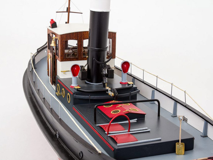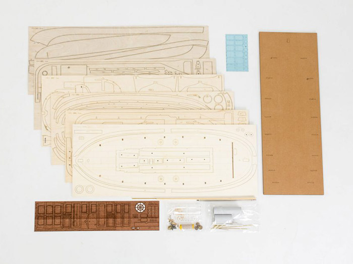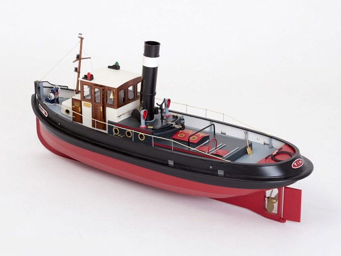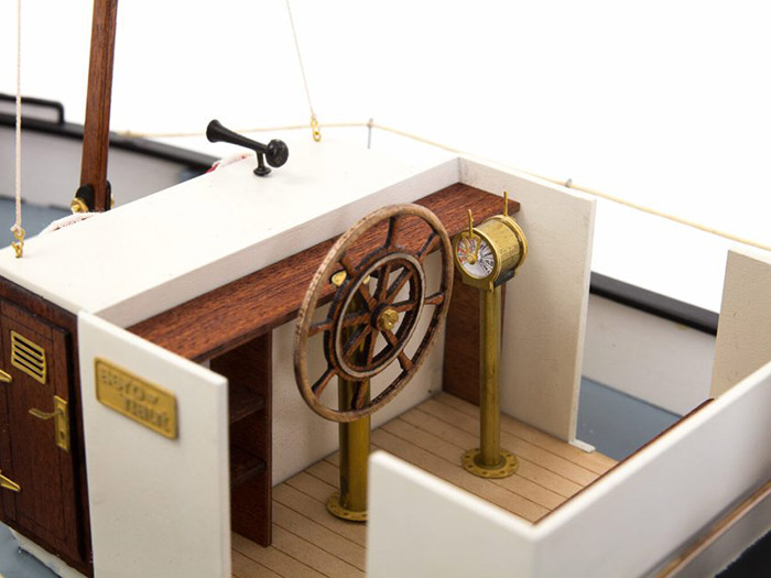 Tim is a steam tug from the early 20th century. The model can be built as a working ship or as a static museum model (with railing). The model impresses with an extensive set of fittings and high-quality etched brass parts allowing the model to be finely detailed. The model kit contains all wooden parts required for construction, ship's shaft, rudder, building slipway, fittings set, etched parts and detailed 3D construction instructions.
