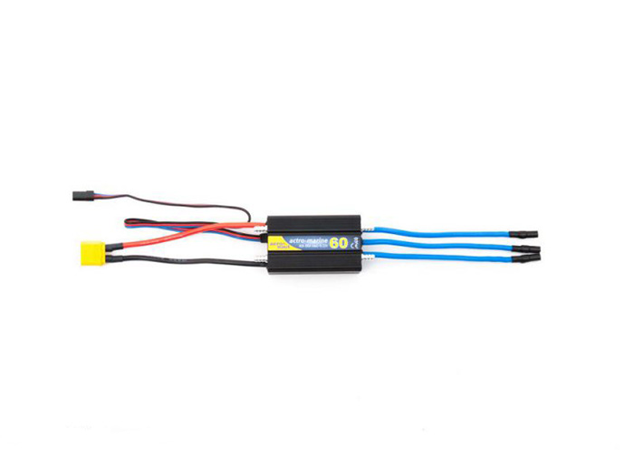 Speed controller suitable for all types of boats including racing. The high BEC supply means you don't need to connect a separate power source. The speed controller is already programmed so that no further adjustments are required for most uses. It is delivered soldered with plugs.